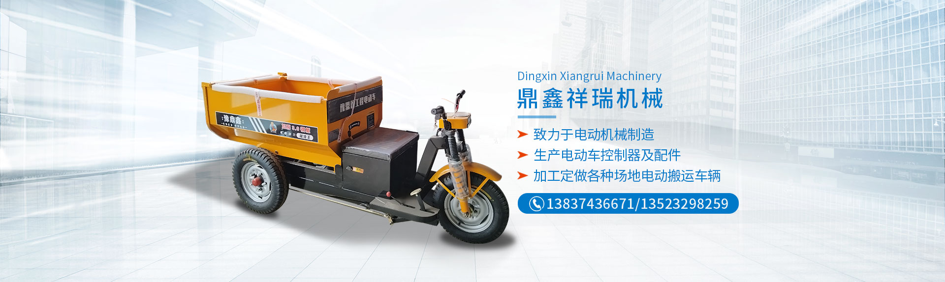 電動工程自卸車長葛市鼎鑫祥瑞機械制造有限公司(原長葛市鑫洋機械配件廠)位于河南省長葛市董村科技工業(yè)區(qū),東鄰220省道, 西鄰G4京港澳高速,距新鄭機場35公里,地理位置比較優(yōu)越,交通便利。 鼎鑫祥瑞機械制造有限公司是一家從事電動機械制造的廠家,現有一支素質很高的技術隊伍,擁有較先進的生產,檢測設備和科學的管理體系,為高質量的產品提供了可靠的保證。 電動工程自卸車主要產品有,1T電動叉車,2T電動叉車,1T,2T,3T,5T,電動礦車,載重王系列貨運電動三輪車,窯場電動專用車,木板廠專用電動車,陶瓷電動搬運車,混凝土電動搬運車,加工定做各種場地電動搬運車輛。本公司生產電動車控制器,電動車配件及電器,各種車輛沖壓件,開發(fā)生產研制電動車后橋,各種車輛剎車拉桿,U型螺栓,加工定做異型U型螺栓。產品分別通過行業(yè)檢測及配套主機廠認可,深受廣大用戶青睞。 歡迎各界人士前來參觀指導工作,如果您對我們的產品感興趣或者有任何的疑問,您可以直接給我們留言或直接與我們聯(lián)絡,并提出寶貴的意見,我們將在收到您的信息后,會及時與您聯(lián)絡。 本公司有專業(yè)的整機配件供應部,供應部地址:長葛市金橋農機城1區(qū)4排5號 電話...